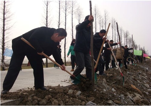 2月9日上午,节后上班第一天,村妇代会组织100多人来到秦家浜开展了义务植树活动。在简短的启动仪式后,大家在秦家浜康庄大道两旁,挖坑种树、挥锹培土,大道上处处呈现热火朝天的劳动景象。经过1个多小时的紧张劳动,大家共种下紫薇、山杜英760棵,为春天培植了一片新绿。