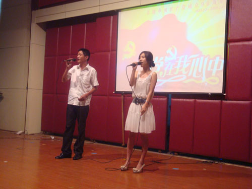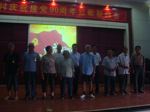 7月1日下午,厍浜村影视厅传出一首首慷慨激昂的红歌。在这里,嘉善农村合作银行、嘉善中学、嘉善泗洲中学、子胥社区以及厍浜村共同举办了一场红歌联谊会,20支曲目共同唱响“党在我心中”这个主旋律,村党总支成员为8位50年以上党龄的老党员佩戴上了纪念章。
