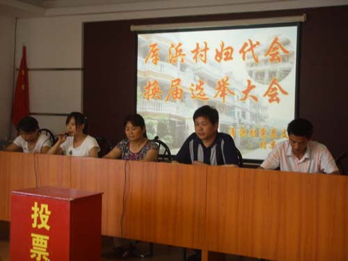 本次妇代会选举应到妇女代表50名,实到44名,到会率达到了88%。村党总支书记蒋富根在代表会上就如何选好新一届妇代会提出要求,他说,我村妇代会2007年被县妇联授予巾帼文明示范村称号,如何保持成绩、做好工作十分重要。经村党总支提议推荐、征求各方意见确定,朱玲燕、张永琴、陈铁君、陈美红等4位同志被列为候选人,报镇妇联审核同意进行差额选举,这次的候选人较以往年纪轻、文化程度高。党总支书记蒋富根还强调,妇女代表是我村新农村建设的主力军,代表了全村的妇女,希望大家行使权力,选出优秀的同志担任妇女干部,是做好我村计生、妇女、卫生等工作起到保证的作用。