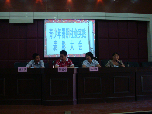 8月20日上午,我村在影视厅举行2010年度暑期社会实践活动表彰大会。村两委、妇代会、团支部对青少年参加活动的次数和表现情况,分成一、二、三等奖,所有参加活动的青少年都得到了奖品。村党总支书记周建中、村委会主任盛玉华和妇代会主任陈美红参加颁奖。