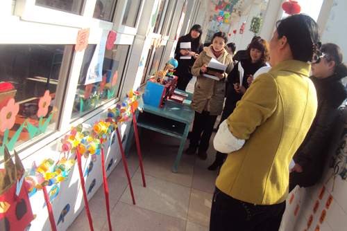 12月17日上午,厍浜幼儿园全园总动员,开展自制体育用具和区域教玩具展评活动。担任本次比赛评委的是家长委员会的八位家长代表,活动的指导思想为:坚持以游戏为基本活动,注重培养幼儿主动学习习惯;促进教师的专业化发展,鼓励教师根据幼儿学习发展的需要和兴趣制作活动材料;注重自制玩教具的使用,激发幼儿探索学习的兴趣;避免人力物力资源的浪费。