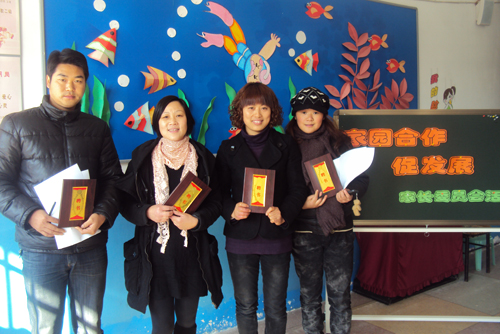 12月17日上午,我园召开了2011年的家长委员会会议,本届家长委员共有8名家长受聘,邱园长首先向8位家长代表发了聘书,向大家介绍了幼儿园的基本情况以及工作的重点和需要家长配合的地方。然后又陪同家长参观了幼儿园的环境,为区角材料和自制体育用具进行了评分。看了老师制作的物品并听了老师的介绍以后,大家都一致表示,幼儿园的老师真的的太聪明了,能利用生活中的废旧材料,做出这么多有意义的物品,供幼儿操作玩耍,真的不简单啊!