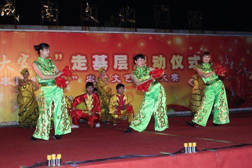 “百姓舞台大家秀”走基层启动仪式暨“十万农民种文化”农村文艺作品大赛的序幕,我村文艺队选送的现代舞《畅想未来》参加了此次比赛。