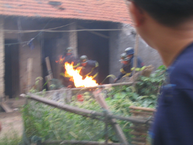 到了现场,我们看到了一只正在冒着熊熊烈火的煤气瓶,它被平放在农户屋内的门槛处,周建忠、张培华、邰永军三人一边疏散群众,一边进行灭火,这时110及119也火速赶到了现场,当时煤气瓶已经燃烧了二十多分钟,幸亏消防队员和村应急分队及时处理,才没有酿成大祸。据群众反映当时该农户正准备做晚饭,却发现煤气怎么也打不着,便想出了用打火机来点火的办法,刚巧接煤气瓶的皮管在此时脱落,泄露的煤气立即烧了起来,一看情况不妙,她试图灭火,但火势太猛,她立即离开了现场。路过的群众发现这个情况后,及时报了警。在这里,我们提醒广大农户,一定要正确地使用燃气,不要贪图一时的方便,以防造成重大的伤亡事故。(陈铁君)