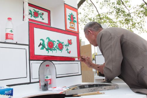 灶花,是流传在民间的美术,也是深受农民喜爱的民间草根艺术。近年来,随着农村城镇化进程的加快,往昔乡间老百姓一日三餐与之打交道的灶头,已逐渐被液化气灶所取代。灶头上那些寓意着和合美满、幸福吉祥的灶花,也日渐淡出了人们的视野,成为尘封的美景。 为了抢救这一濒危的非物质文化遗产,使灶花这乡间艺术不致淹没,5月25日在嘉善泗州公园举行了嘉善县非物质文化遗产节,我村村民唐水荣代表罗星街道展示了自己的手艺,他用尺画边纹线和画框,线条分明,外边框最粗,内边框细,框型为长方形,寓意方方正正,堂堂正正。每个框内画上了大小不一的万年青,并且画上了花边,寓意万年长青。在绘画途中,吸引了不少围观的群众,本次灶文化比赛中唐水荣获得了三等奖。