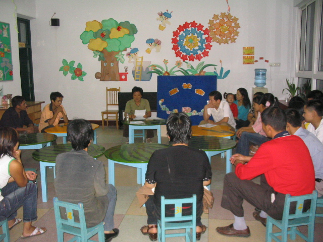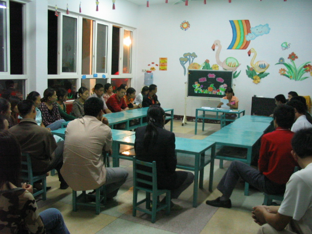 9月21日晚,我村幼儿园召开了06学年第一学期的幼儿园家长会。通过家长会加强老师与家长之间的沟通,使孩子能够更好的成长。在幼儿园,每个班级都坐满了家长,他们都在认真地听老师讲解小朋友在生活、学习中的注意点,时而因老师口中孩子们幼稚的表现而爆发出一阵笑声,家长随时向老师提出问题,老师认真的回答每一位家长提出的问题,气氛活跃。园长邱维维向家长通报了幼儿园经过二年的努力,终于达到了二级幼儿园的喜讯,一位家长说“这里的老师好、设施好、环境好,虽然学费低,但是教学质量却不低。让孩子来这里读,我们放心!”。