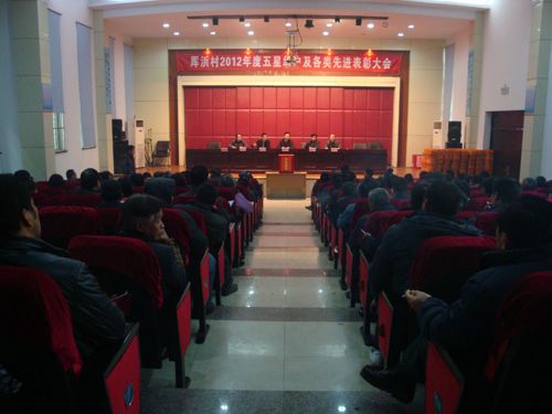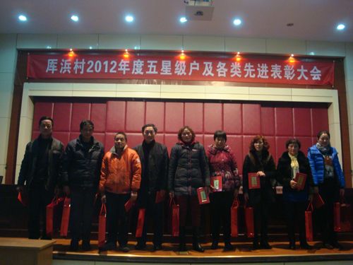 2月5日下午,在我村文化活动中心影视厅,村党委、村委会召开了2012年度五星级户及各类先进表彰会议,共有6家企业、29位个人、879户五星级户得到表彰奖励。