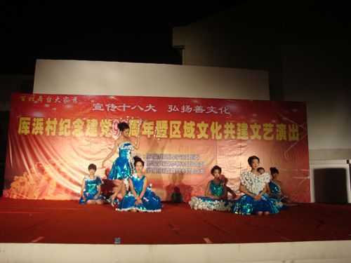 为纪念建党92周年,进一步激发村民对文艺的热爱和丰富业余生活,促进村与村之间文化的交流。6月30日晚上,“百姓舞台大家秀 宣传十八大 弘扬善文化”纪念建党92周年暨区域文化共建文艺演出在我村举行,由我村主办,亭桥村、鑫锋村协办,嘉善中学等5家共建单位参与了本次演出。罗星街道党委副书记、办事处主任钱慧,县委组织部部务会议成员、办公室主任何剑源,县委宣传部文产科科长金林峰等领导一起观看了演出。