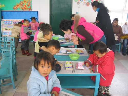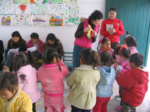 12月4日上午,实验幼儿园三位老师来到我园开展“送教下乡”活动,惠民、干窑等镇幼儿园的20多位老师参加了活动。俞娟老师带领小班的小朋友开展了美术活动《快乐的鸡宝宝》,她通过一个深动的小故事引出活动,把事先准备好的纸张上的小鸡涂上色彩,再将小鸡从纸上撕下来,在撕的时候,俞老师要小朋友小心,别将纸撕坏,如果撕坏了,鸡宝宝要痛的。在她示范了一边后,小朋友也在小桌子上动起手来了,俞老师在一旁耐心地指导。一会儿,小朋友们也将漂亮的鸡宝宝做好了,贴在了自己的衣服上,满心喜悦和自豪呢! 随后,李萍老师为小朋友带来了科学活动《我看到的运动》,主要针对的是大班小朋友。一听到老师让他们在众多玩具中寻找一样并让它运动起来时,大家一拥而上。有的小朋友选了皮球,有的选择了积木,还有的选择了大鼓,大家不亦乐乎地玩了起来。李老师在问到谁知道了运动时,小朋友们都踊跃回答,当问到生活中还有哪些运动时,小朋友更是争先恐后地举起小手。在了解了运动的方向后,李老师要求小朋友用画来表现运动的状态,并将自己所画的向其他的老师进行描述。