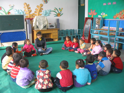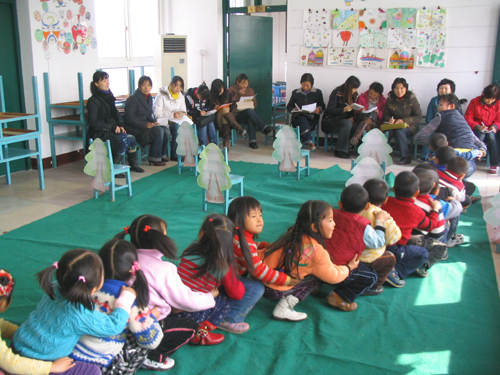 12月4日上午,实验幼儿园三位老师来到我园开展“送教下乡”活动,惠民、干窑等镇幼儿园的20多位老师参加了活动。