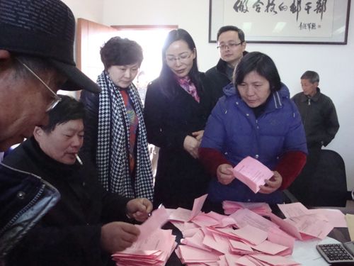 当天早上5点30分,各站点派出3名同志到村领取选票。6点,各站点开始投票。此次投票时间规定为上午6点至11点。街道指导组组长俞娟、副组长张宏斌等领导在选举前到各站点视察选举工作进展情况。上午11点,各站点选举工作完毕。我村共有选民2833名,参加投票选举的选民(含委托投票)2833名。共发出主任、副主任选票2833张,收回2817张,其中有效票2732张。本次换届选举应选主任1名,副主任2名,实行自荐直选。经过监计票人汇总后,周建中以2307票当选为村委会主任,杨化迁、朱玲燕分别以2351票、2269票当选为村委会副主任。