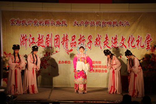 演出开始之前,我村文化礼堂就热热闹闹,村民们非常期待这场演出。当然,浙江省越剧团的演员的演技非常精湛,节目非常经典,表演非常精彩,他们带来的《梁山伯与祝英台》、《祥林嫂》等节目赢得了我村村民一阵又一阵的掌声。