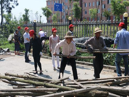 在现场,大家对在绿化带内存在的违章简易棚进行了拆除,并结合我村开展的旧砖块、木材的回收对拆除的砖块等材料进行了装运回收,同时对绿化带内乱堆放物品进行了清理。