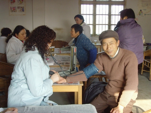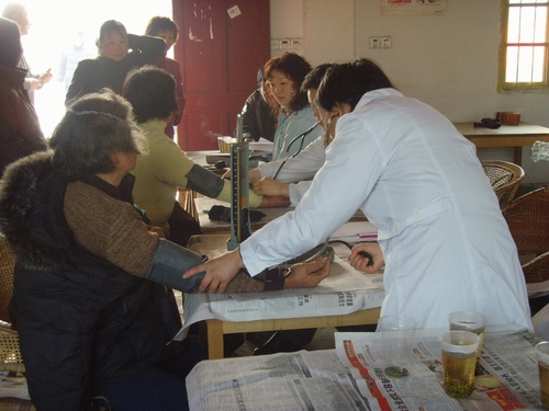 上午八点多,县第一人民医院的医生们来到了我村的老年活动室,为前来咨询的人免费测量血压,健康检查、发放卫生宣传资料,并展出了疾病防治的宣传图。许多村民闻讯后,放下手头的农活陆续赶到活动室,对自己有所不适的问题仔细地向医生询问,在走出咨询现场的时候,每个人都找到了自己的答案,村民对这样的活动都表示大力支持。