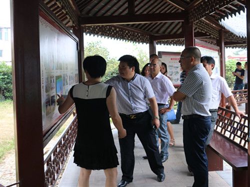 在四廊里,我村党委书记周建中向沈志勇一行人介绍了我村村史民情、特色文化活动展示、道德模仿示范榜、学子榜等。随后,周建中带领他们先后参观了文化礼堂主厅、工业展厅、道德讲堂并逐一做了介绍。并与他们就村级文化礼堂建设运作模式、工作开展情况和经费保障等情况作了交流。