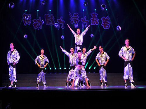届排舞大赛在影剧院举行,我村男子排舞队应邀参加比赛,并荣获银牌。