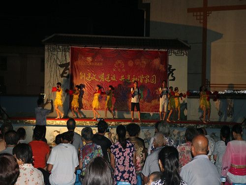 8月12日晚上,“星艺缘”艺术团在我村篮球广场进行了歌舞演出,演出吸引了我村百余多名群众前来观看。