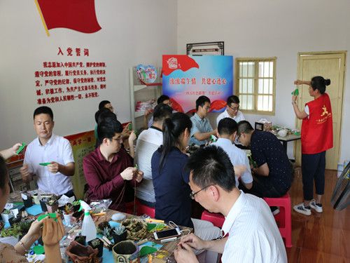 共建单位县委组织部部长沈伟强等领导在街道党委委员陆明的陪同下,参观了黄家浜美丽乡村建设点,听取了村党委书记周建中关于美丽乡村、党员先锋站等的建设情况以及县级优美庭院示范户彭爱华的庭院建设经验。参观结束后,结合传统节日端午,共建单位在“和谐小家”党员先锋站开展了香囊制作和多肉植物种植培训活动。