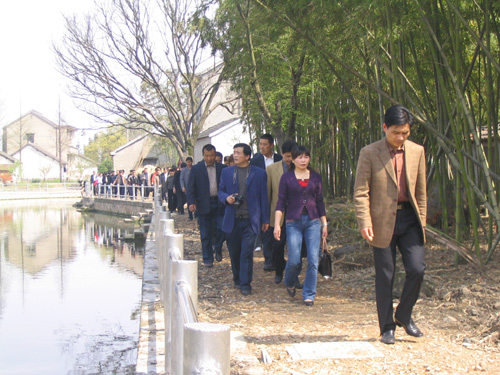 在动员会开始前,镇领导及各村书记、主任等一百多人先到联丰村参观,当参观人员来到我村的厍浜自然村,查看整治后的情况,沈申镇长惊喜地发现,河水更加清澈了,河里的鱼变多了,还成群结队地畅游着,他跟身边的其他领导说“通过生态村建设,河里的鱼更加多了,等到自然村的沿河绿化、道路完工时,这里的村民吃好晚饭出来沿河走一圈,那是何等的惬意啊!”。