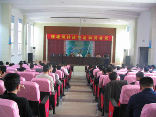 3月28日下午,在我村影视厅召开了魏塘镇村庄整治动员会议,魏塘镇镇长沈申、党委副书记郁根明、副镇长俞美琪、许建伟、陈志龙等领导及各村书记、主任和联村干部参加会议。