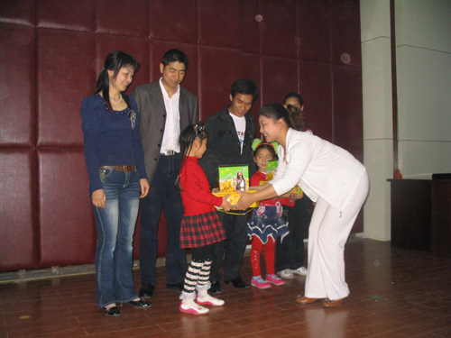 汤淑萍家庭给大家带来的也是两个节目,汤淑萍为小朋友们唱了一首《泼水歌》,边唱还边挥舞着小手,还真像一个小演员呢!一曲歌毕,汤淑萍的爸爸和姐姐就相继上台为大家表演口琴独奏《妈妈的吻》,当爸爸开始吹奏起口琴时,姐姐拿起了话筒唱出悠扬的歌声,汤淑萍开始随着音乐跳起舞来。 表演结束后,园长邱维维为这两个家庭颁发了礼物,她希望在以后的活动中能够有更多的家庭参与进来。随后,小朋友们观看了动画片《孙悟空》,大家看的是津津有味。
