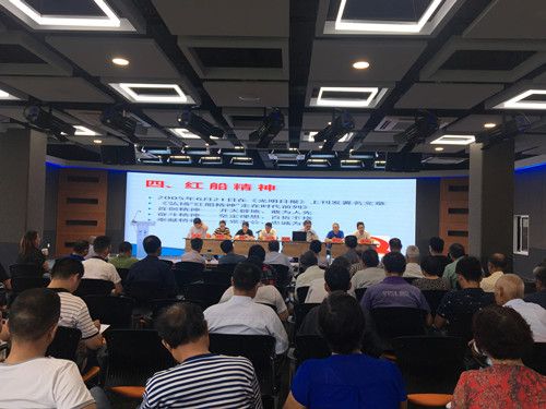 会上,首先由俞永军带领全体党员重温入党誓词。党员们举起右手握拳,目光凝视着党旗,诵读着每一句誓词,庄重而又严肃。宣誓完毕后,俞永军从回顾中国共产党的党史、党的理论体系、习近平新时代中国特色社会主义思想、红船精神这四个方面进行党课《不忘初心 牢记使命 做红船精神的忠实实践者》的讲解。