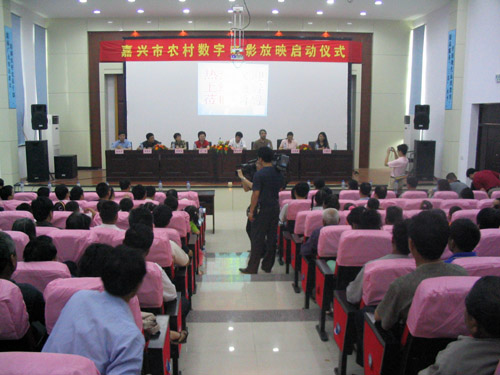 5月18日上午,在我村文化活动中心影视厅举行了嘉兴市农村数字电影放映启动仪式。浙江省文化厅陆耀亭处长、罗永祥副处长以及嘉兴市副市长柴永强等省、市、县、镇领导参加了启动仪式,会议由市文化局王鸣霞局长主持。
