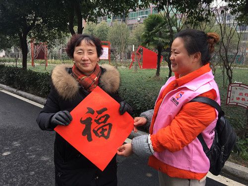 活动结束后,志愿者将写好的福字和对联送到村民们的手中,并送上节日的祝福。