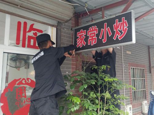 村工作人员及金丰特保队员挨家到经营户进行劝导,并安排人手逐一进行拆除、清理。此次行动共拆除违章设置的广告牌匾、灯箱33个。