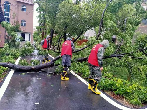 下午14:30左右,厍浜村接到联民新区村民反应,董家路有大树倒伏,及时组织党员志愿者、退伍军人志愿者前往现场支援,清理倒伏树木。