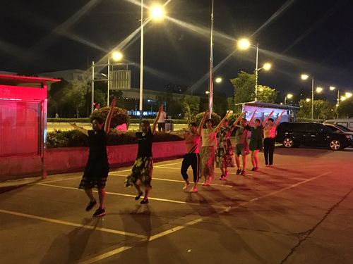 刘老师把舞蹈动作逐步分解,耐心示范,队员们跟着刘老师一个动作接一个动作地学习,刘老师逐个指正不规范的动作。经过两个小时的学习,队员们终于把整支舞蹈学会了。