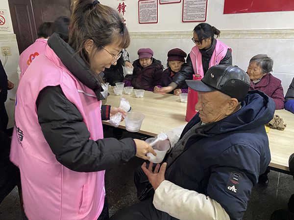 为弘扬我们敬老爱老传统文化,在小年夜节来临之际,让我村老年人们感受到厍浜村大家庭的温暖。2022年1月26日,厍浜村工作人员开展“佳节尚文明 志愿关爱行”煮汤圆,送温暖活动。当日下午,工作人员来到村老年活动中心,将准备好的热腾腾的汤圆送到老人们的手里,同时也为村民们送去了一份新年里甜蜜的祝福与问候。 甜甜糯糯的汤圆传递着幸福、和谐一家亲的浓浓情意。汤圆虽然不多,却是村工作人员的一点点心意,收到汤圆的老人们都对送汤圆的活动表示感谢和感动,同时小小的汤圆里凝聚着满满的祝福和关心。