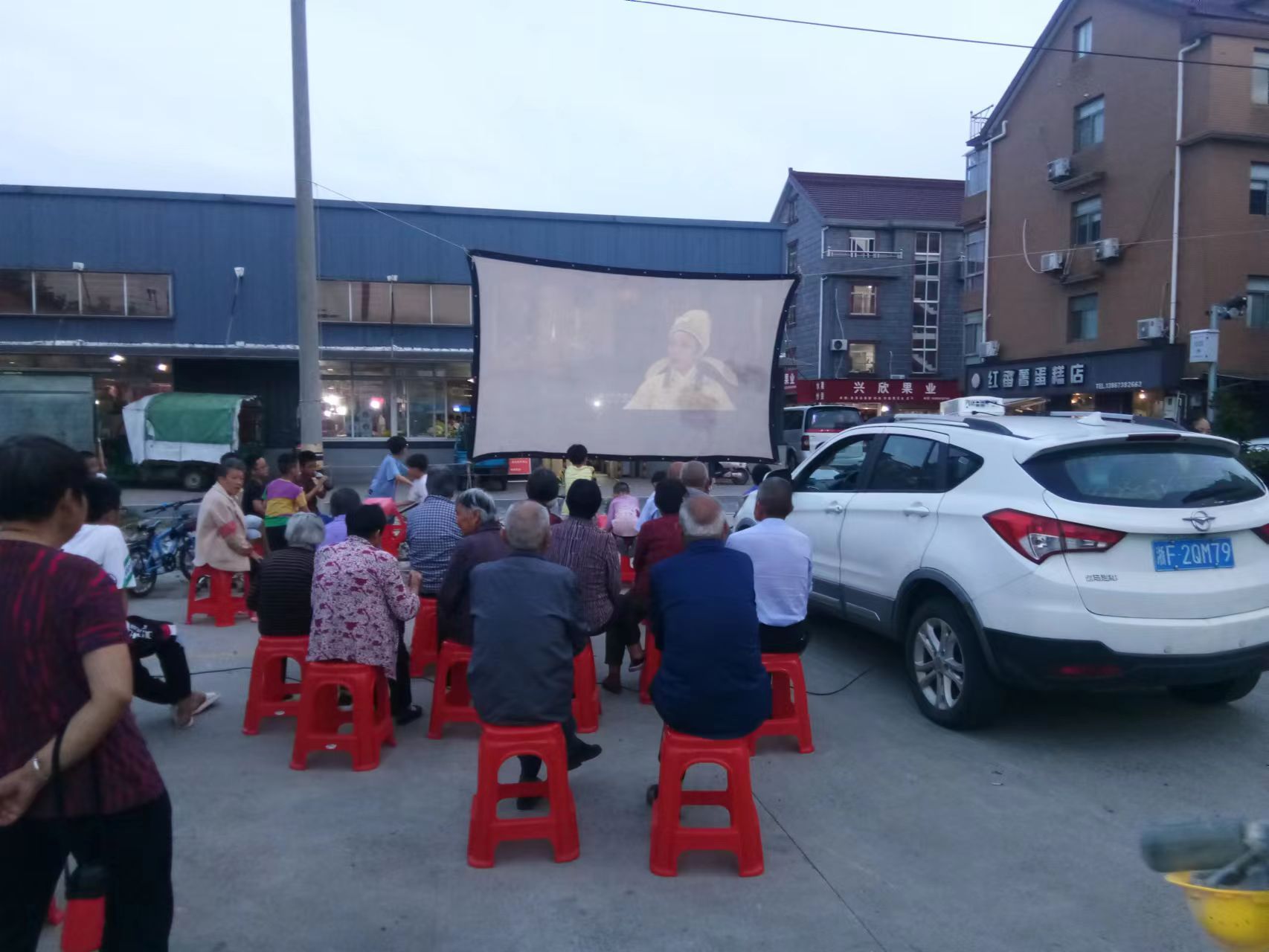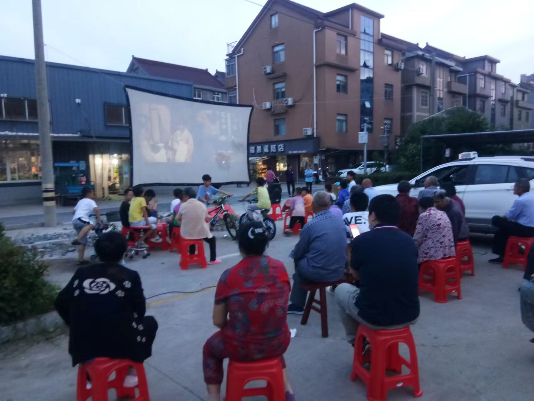 活动当晚,工作人员早早来到广场上搭设银幕布,调试设备。听说晚上有电影,不少村民吃过晚饭后前来围观,大家自带板凳,纷纷落座,满怀欣喜地等待着电影的开始。