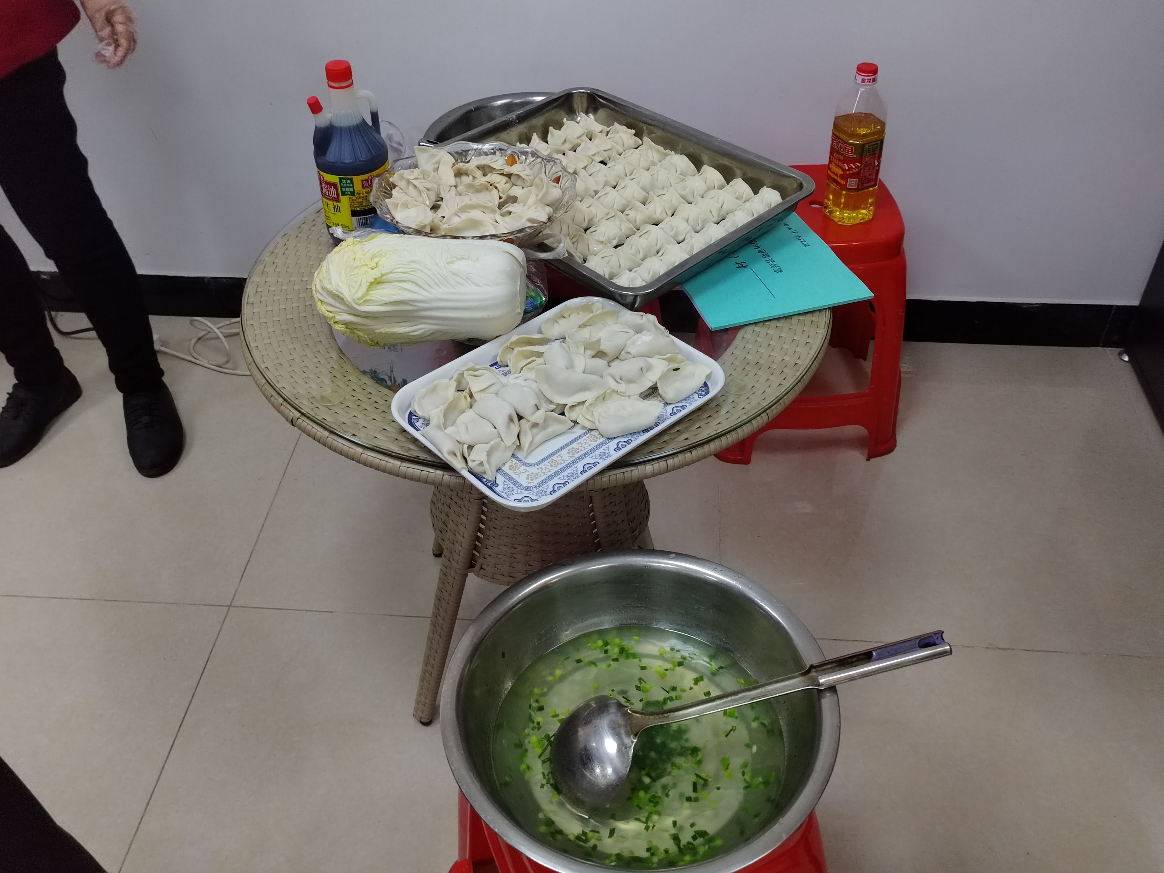 大家围坐在一起包饺子,熬制饺子汤底,一碗碗香气四溢的饺子被摆上桌子,每个人脸上带着喜庆的笑容。随后大家拿出材料,用毛笔在红色的纸张上细细描绘,一个个新春福字跃然纸上,大家拿着自己写完的福字合影留念,庆祝这次活动顺利展开,圆满完成。