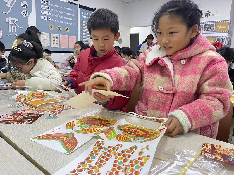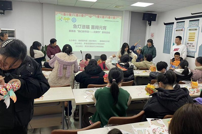 2月21日下午,厍浜村开展寒假春泥计划之“鱼灯送福 喜闹元宵”元宵节社科普及暨鳌鱼灯手工制作活动。
