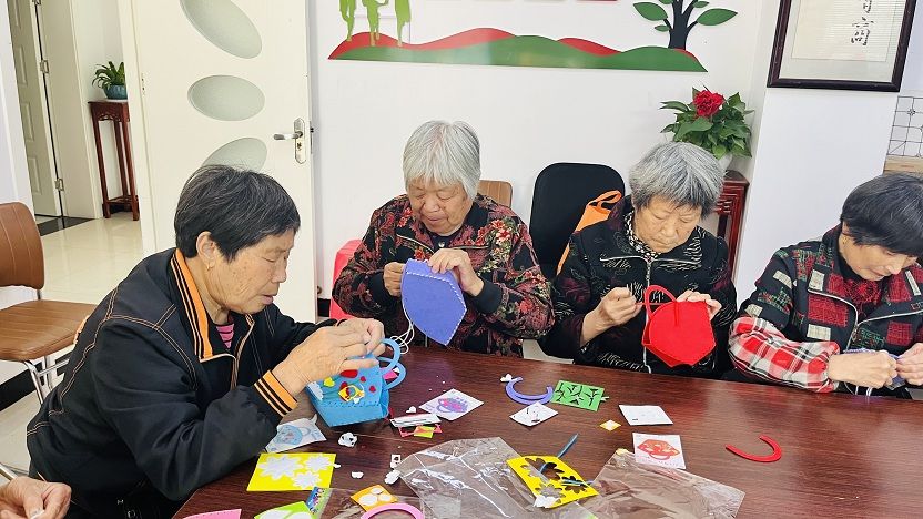 活动现场,志愿者逐一发放制作材料包,手把手教学制作贴花无纺布艺包,穿针引线、贴花贴钻,邻里合作互助,欢声笑语不断。经过1个小时的努力,一个个精美的贴花小包呈现在眼前,花样的小包献给作为母亲的她们,让她们无论什么年纪都要记得爱自己。