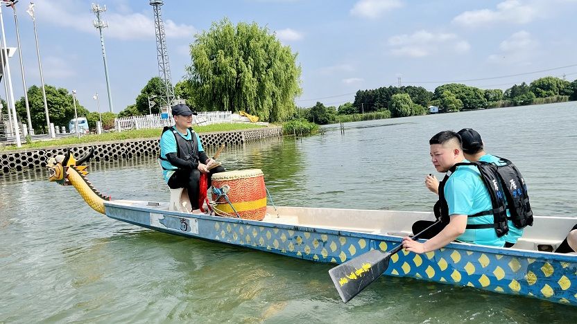 6月1日上午,厍浜村龙舟队同心协力,如火如荼地训练,备战县端午龙舟赛。“咚、咚、咚……”“嗨、嗨、嗨……”龙舟划手手持划桨,随鼓点节奏奋力挥动,动作整齐。这是赛前的最后一次训练,队员们逐渐熟悉赛道,在一次次模拟训练中拧成一股绳,将速度和力量结合起来,龙舟在清澈的河面上劈波斩浪。