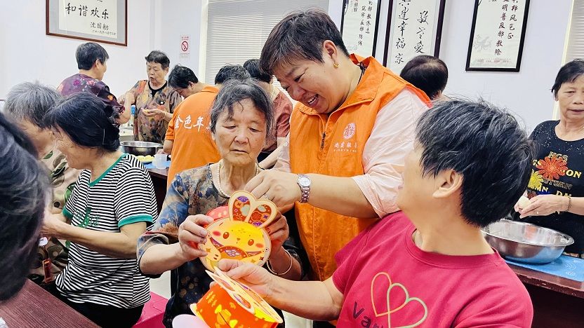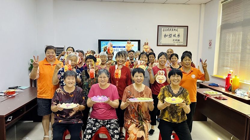 丹桂飘香又中秋,花好月圆人长久。志愿者为大家讲解了中秋节的历史背景、传统习俗和文化内涵并结合反诈反邪宣传,为大家筑牢安全家园。随后,开展了冰皮月饼和月兔灯手工制作活动,志愿者介绍道,“冰皮月饼制作其实很简单,掌握面粉的配比就可以”大家在志愿者的指导下,有条不紊地烫面、揉面团、包馅料、压模,不一会儿,一个个象征着团圆与美好祝愿的月饼就呈现在大家眼前,大家脸上洋溢着满满的成就感。