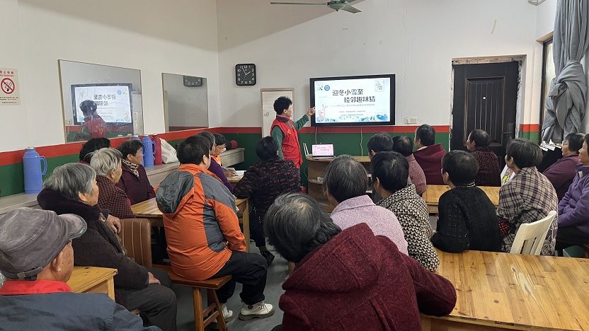 寒入冬,秋远去。小雪是冬季的第二个节气,小雪节气的到来,意味着天气会越来越冷。活动伊始,志愿者为村民讲述了“小雪”节气的由来、物候现象、传统习俗、冬季养生等知识。随后,志愿者带领村民进行了“你来比划我来猜”的趣味游戏,志愿者介绍道,“这个小游戏,既锻炼了老年人的思维和表演能力,又能让大家开怀大笑,增加邻里默契度”,村民有趣的表演和思维,让现场欢声笑语不断。