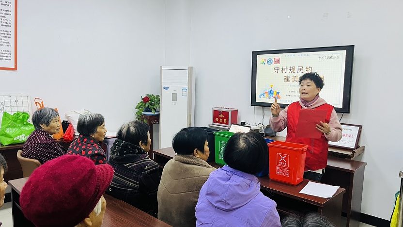 活动中,志愿者带领大家学习《厍浜村村规民约》,共同维护村庄整洁,认真做好垃圾分类工作、包卫生、包绿化、包秩序“门前三包”,提倡实行垃圾源头分类、减量处理、定点投放,积极争创“优美庭院”。