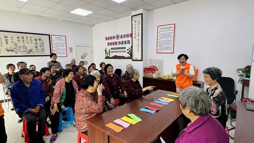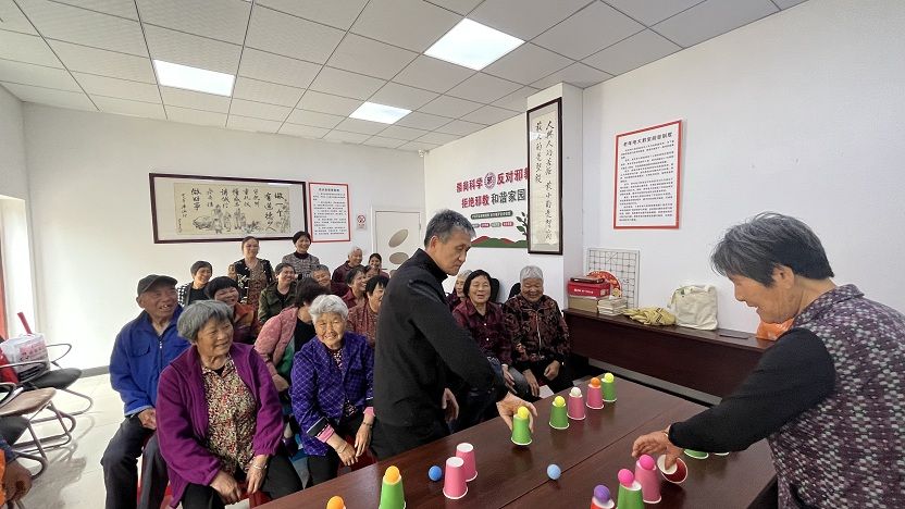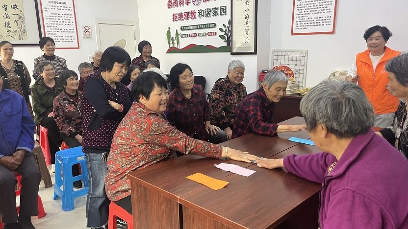 5 月 7 日,阳光和煦,暖意融融,一场充满欢声笑语的 “趣运动 共参与” 老年人睦邻趣味竞赛活动在厍浜村文化礼堂火热开展。此次活动通过反手接球、抢牌大作战两个分组对抗游戏,为村里的老年人带来了别样的运动乐趣,同时有效训练并提高了大家手眼配合的能力。