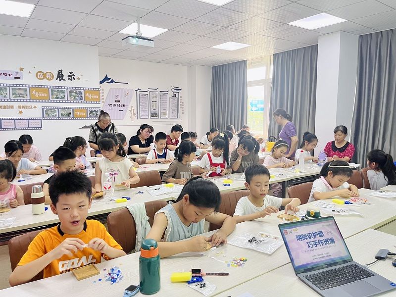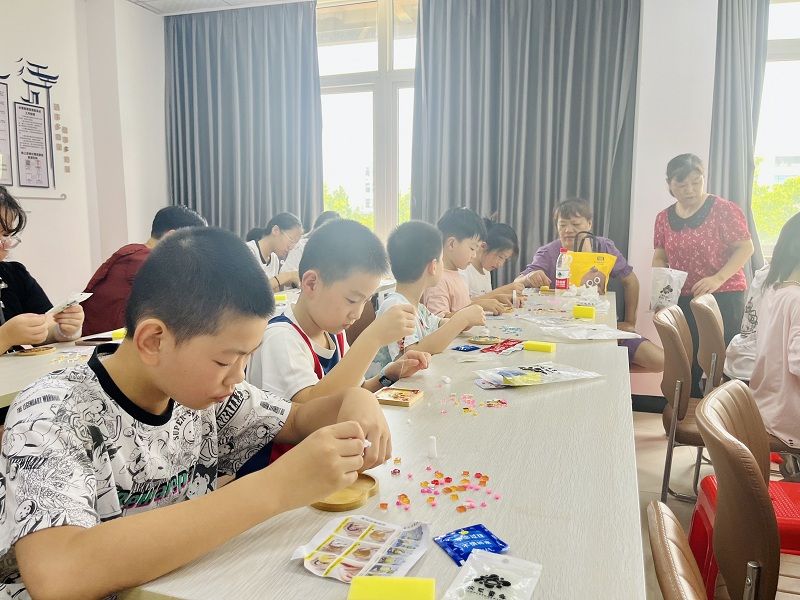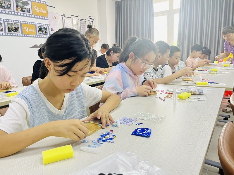 经过约半小时的创作,一个个独一无二的马赛克杯垫逐渐成型。有的杯垫上是色彩渐变的图案,层次分明;有的则是不规则的拼接,充满了童趣。在制作过程中,孩子们不仅锻炼了动手能力,还在专注于拼接的过程中,让眼睛从之前讲座时的专注听讲中得到了放松,在轻松愉快的氛围中缓解了眼睛的疲劳。