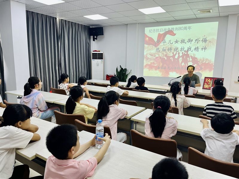 活动伊始,红色教育讲座拉开帷幕。厍浜村特别邀请到嘉善高级中学的金昊老师担任主讲人。金昊老师以《中华儿女抵御外侮 热血铸就抗战精神》为题,结合大量珍贵的历史资料、感人至深的英雄事迹,生动再现了抗日战争时期中华儿女为抵御外侮、保卫家国而浴血奋战的峥嵘岁月。讲座中,金老师时而慷慨激昂地讲述战士们的英勇壮举,时而深情款款地缅怀牺牲的先烈,让在场的青少年们深受触动,仿佛置身于那个战火纷飞的年代,深刻体会到如今幸福生活的来之不易,也更加坚定了他们传承和弘扬抗战精神的决心,以此纪念抗日战争胜利 80周年。