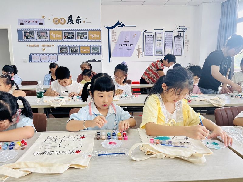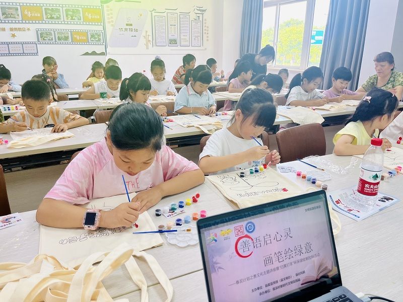 讲座结束后,备受期待的扫黄打非护苗环保袋绘制活动随即展开。工作人员为孩子们分发了白色环保袋、画笔和颜料。孩子们兴致勃勃地拿起画笔,将“扫黄打非”的理念融入到自己的作品之中,孩子们在环保袋上画出了象征着绿色希望的绿色树叶,旁边写上“绿书签行动”、“扫黄打非护苗”等字样,寓意着在“扫黄打非”的保护下,孩子们能在阳光下健康成长。孩子们用五彩斑斓的画笔尽情挥洒创意,每一个环保袋都充满了童真与寓意。