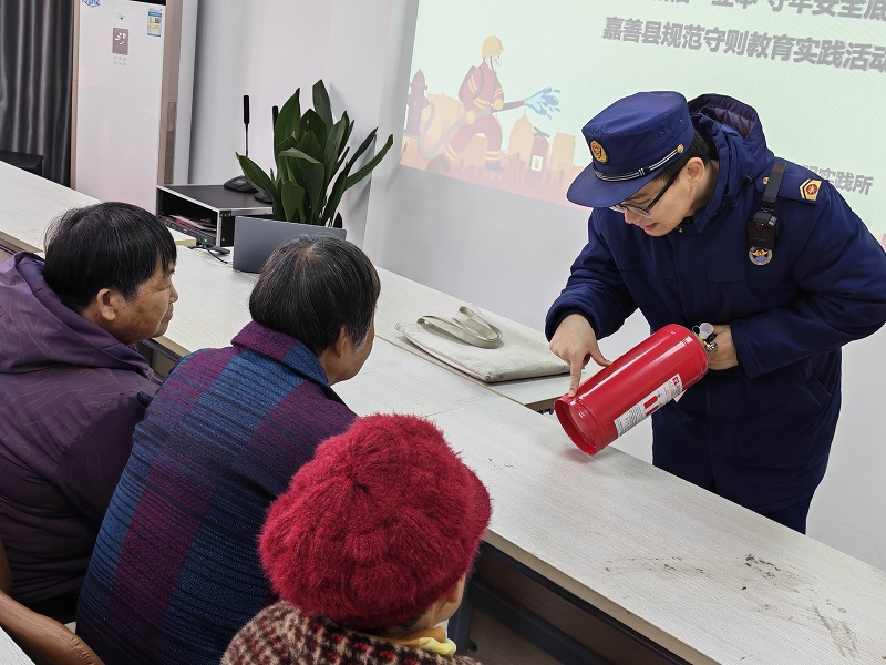 “用完燃气要关阀,电器老化及时换,消防通道别堵塞,诚信守诺护平安……”1月19日,厍浜村文化礼堂开展以“村规民约记于心 消防安全践于行——以‘诚信’立本 守牢安全底线”为主题的规范守则教育实践活动。活动通过理论宣讲+实操演练的形式,将村规民约与消防安全知识深度融合,让“诚信守诺、安全第一”的理念深入老年人心间。
