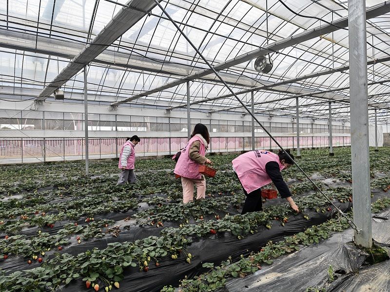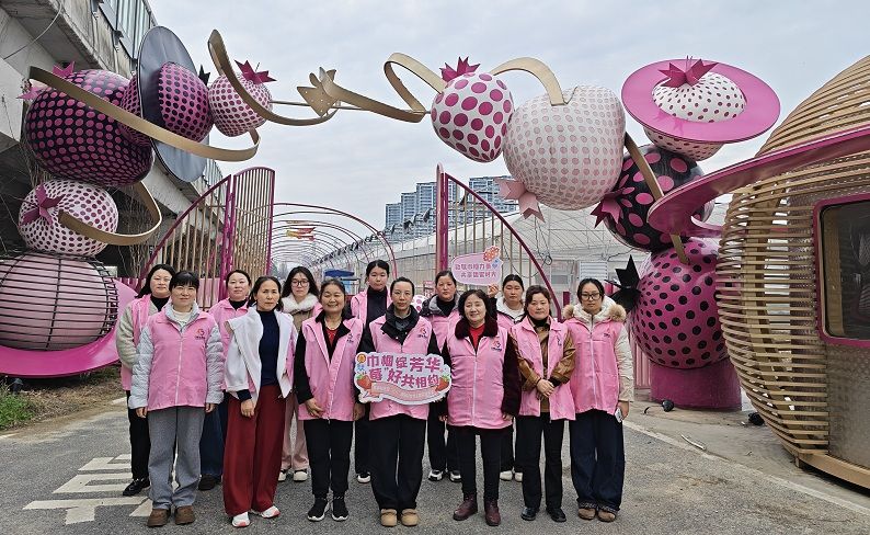 参观结束后,大家前往草莓种植园,开启欢乐采摘之旅。大棚内暖意融融,翠绿的藤蔓间挂满了鲜红饱满的草莓,果香四溢。女性同胞们手提采摘篮,穿梭在田垄间,弯腰挑选、细心采摘,欢声笑语回荡在田间地头,大家相互分享采摘技巧,在亲身体验劳动乐趣的同时,收获了满满的幸福感。