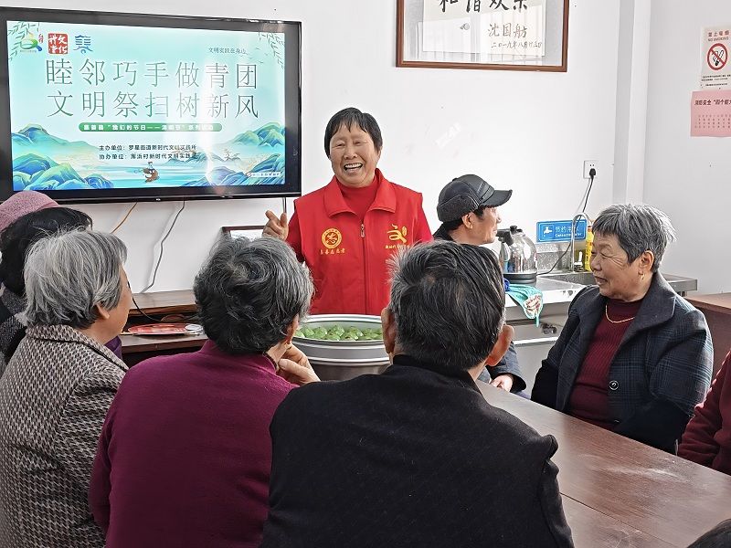 在蒸制青团的间隙,志愿者同步开展移风易俗、文明祭扫宣传,向村民普及文明祭扫理念,倡导大家摒弃焚香烧纸、燃放鞭炮等传统祭扫陋习,转而采用鲜花祭扫、网络寄语、家庭追思等绿色环保、简约文明的方式缅怀先辈、寄托哀思。志愿者耐心解答村民疑问,引导大家转变祭扫观念,让文明缅怀、绿色清明的理念深入人心。