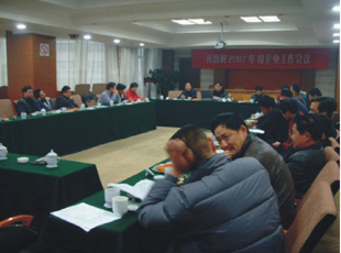 村实业总公司副总经理秦国林通报了2007年度企业上交款完成情况。村妇女主任陈美红通报了各企业的卫生费收缴情况,并与各企业签订了计生协议书。会议的最后,各企业负责人在村主任盛永章的带领下学习了最新修订的《劳动法》。