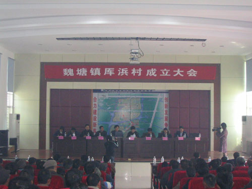 为了更好地建设新农村,经上级党委、政府研究后决定将厍浜村与联星村合并,在两村村民代表大会表决及村民签字同意后顺利合并。合并后的村名仍是厍浜村,人口3160人,共有农户996户,有党员95人,村民代表98人,24个村民小组,全村共有耕地面积6796亩,水田5466亩。粮经比例40:60。原联星村为厍浜村的南片,原厍浜村现为厍浜村的北片。 3月20日下午,我村在村文化活动中心影视厅召开魏塘镇厍浜村成立大会,南片与北片的党员、组长、村民代表、企业代表以及妇女联络员近200人参加了会议,党委委员、镇规模调整指导小组组长陆芸参加了成立大会。会议由村党总支副书记盛玉华主持。 会上,镇党委委员、镇规模调整指导小组组长陆芸宣读了上级文件,宣布了上级任命厍浜村规模调整后的新班子成员并讲了话。新任命的厍浜村党总支书记蒋富根宣布厍浜村正式成立。在成立会上村党总支书记蒋富根代表规模调整领导小组全体成员讲了话,他说,厍浜村与联星村合并是两村村民政治生活中的一件大事,这是城乡一体化发展的需要,也是我们建设新农村的需要。合并后厍浜村2008年的目标是:工业总产值3亿元,技改投入确保2500万元,引进企业3家。实现村级集体可支配资金300万元,力争320万元,纯农人均纯收入达到10000元。粮经比例35:65,南片要达到30:70。在新农村建设方面,一是抓巩固提高省示范村的创建成果,抓好联民新区各项配套工程建设,二是重点抓好合并后的新农村规划。三是要借助镇工业园区规划好厍浜村工业建设用地,用十年时间,把厍浜村的可用资金达到1000万元宏伟目标。 同时,他还提出了合并后的厍浜村要“喊响一句口号”,就是“创业创新争第一、和谐发展强厍浜”这句口号。“说好一句话”就是从今天的会议后,不分厍浜人和联星人,大家从此都是厍浜人,只有厍浜人,才能做好厍浜的事,创好厍浜的事业,大家要坚决不做有损厍浜的事,不说有损厍浜的话,为新厍浜添砖加瓦。“围绕一个目标”就是要围绕村党总支提出的工作目标,做好厍浜村的事。“办好一件事”就是新农村建设规划这件大事。“完成好一项任务”就是要完成好村二委班子的换届选举工作。同时,在实施好五项制度的基础上,做好四个抓,“南片抓提升,北片抓精品,党员抓作用,干部抓形象”的工作目标。参加成立大会的各界人士,他们个个喜气洋洋,对厍浜村的成立和村党总支提出的目标任务鼓舞人心,相信在村党总支的领导下厍浜村的各项工作必将走在全镇的前列。