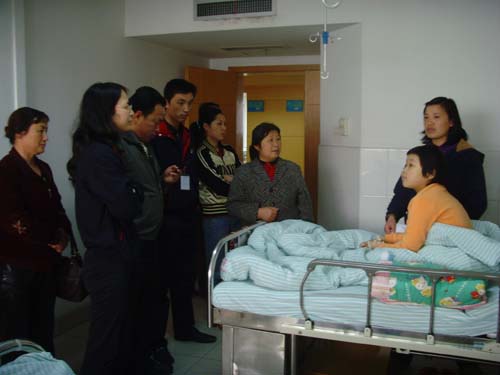 爱心基金的同志对病中的小女孩表示亲切的慰问,并祝她早日康复